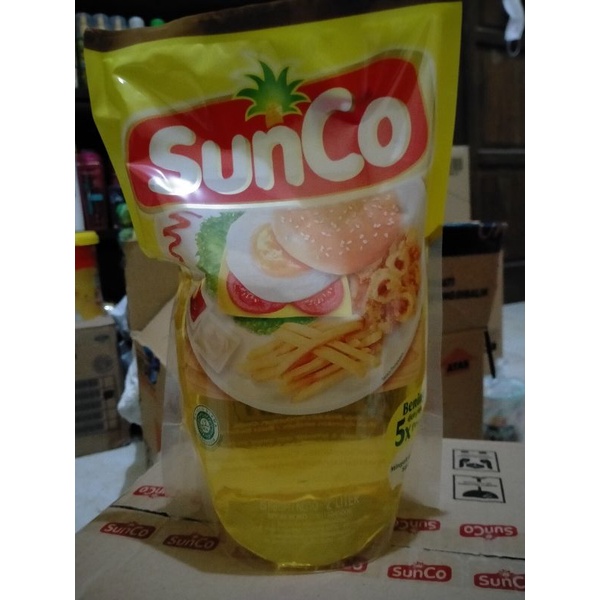 minyak sunco kemasan 2 liter adalah minyak horeng sawit pilihan melalui 5x proses yaitu 3x permurnian, dan 2 x penyaringan sehingga menghasilkan minyak goreng yang bening dan berkualitas