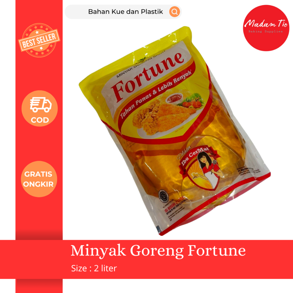 Minyak Fortune 2 liter adalah minyak goreng berkualitas tinggi yang terbuat dari kelapa sawit pilihan, dirancang untuk memenuhi kebutuhan memasak sehari-hari. Minyak ini memiliki kandungan Omega 3 dan Omega 6 yang bermanfaat bagi kesehatan serta sudah melalui proses pemurnian sehingga menghasilkan minyak dengan warna jernih dan bau netral. Cocok digunakan untuk menggoreng, menumis, atau mengolah makanan lainnya karena tahan panas tinggi dan tidak mudah berasap. Kemasan 2 liter sangat praktis untuk penggunaan rumah tangga, memberikan nilai ekonomis dengan kualitas yang tetap terjamin.