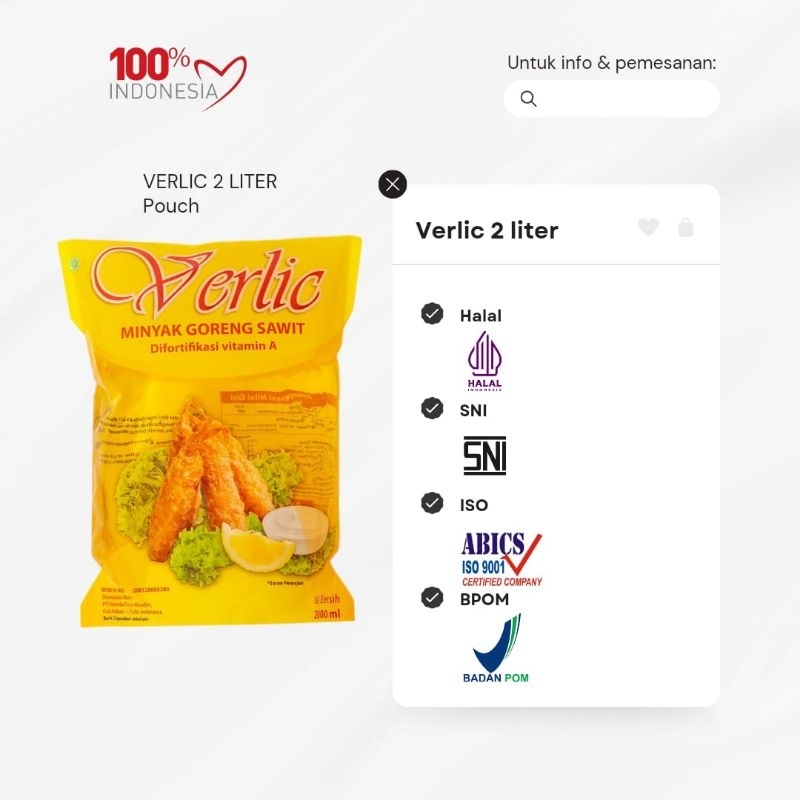 VERLIC bisamenjadi minyak goreng yang akan selalu memenuhi kebutuhan masyarakat Indonesia.