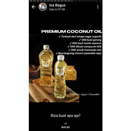 Vco kuntji diperoleh langsung dari snatan kelapa segar tanpa melalui proses pemanasan, penyulingan, pemutihan, dan pengharuman sehingga tidak merubah sifat alami minyak. vco tidak sama dengan minyak kelapa biasa karena bahan mentah maupun proses ekstraksi nya tidak menggunakan panas sama sekali.