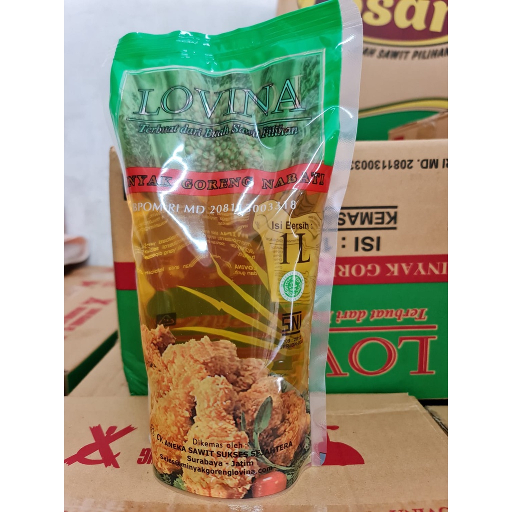 Minyak lovina merupakan produk minyak goreng kelas premium. Diproses dengan teknologi paling mutakhir, minyak goreng berbahan kelapa sawit ini memiliki kualitas tinggi.