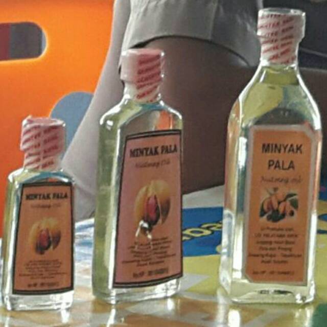 Beberapa tetes minyak pala dicampur dengan sesendok madu dapat mengobati ggejala sakit perut dan kembung.