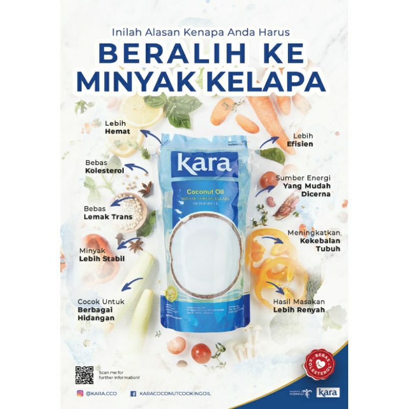 Minyak sehat Minyak kelapa tanpa kolesterol rendah lemak bisa mengurangi resiko jantung dan stroke , bagus untuk ibu menyusui untuk memperlancar asi , bagus untuk bikin Mp-Asi karna minak kelapa kara mengandung asam yang terkandung di dalam Asi untuk sehat jangka panjang , minyak kelapa kara bagus untuk orang tua anak balita dan anak baby