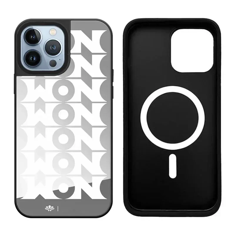 Mirror Surface Black Border Korean Wine Bottle Pattern IPhone 11 12 13 14 15 Pro Max Protective Case with MagSafe