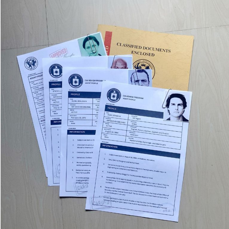 Mission Impossible Agent Profile Document Props