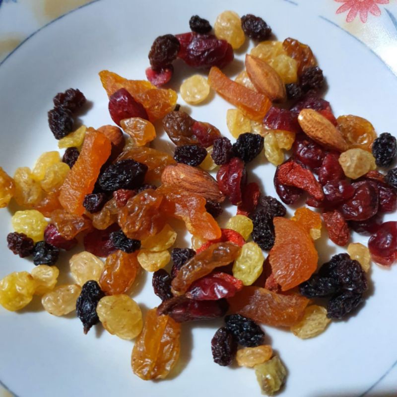 Mix Berry berisi buah-buah kering yang bisa dimakan langsung atau dicampur dengan oat meal, granola, juice, dll