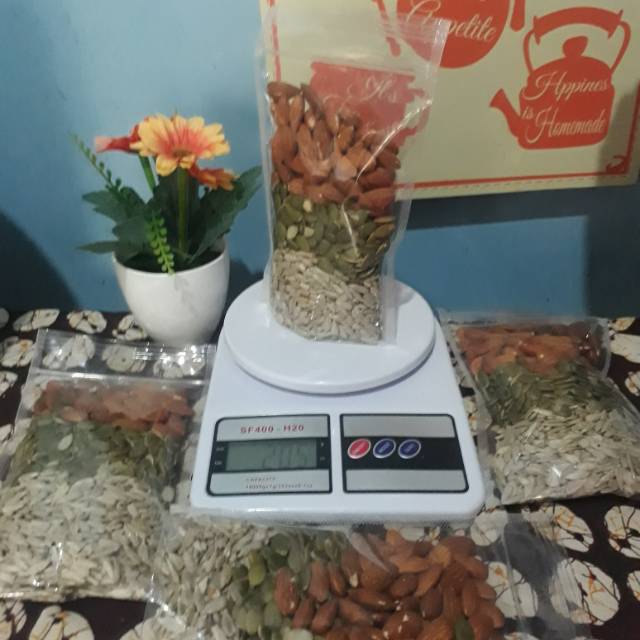 Mix nuts isi 70 gram sunflower seeda 65 gram pumpkin seeds dan 65 gram almond