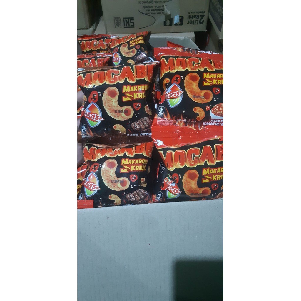 Makaroni Mocabe 1 renteng isi 12 sachet. Renyahnya makaroni bercampur dengan rasa pedas gurih berani coba ada 2 rasa :