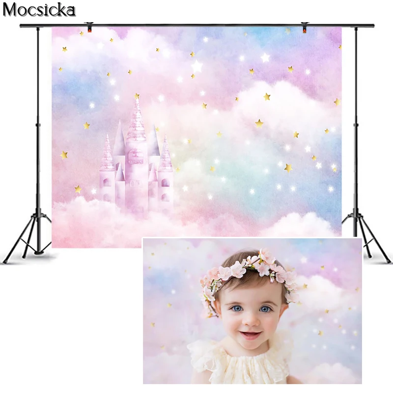 Mocsicka новорожденный замок мечты фон для фотосъемки блестящие звезды облако декорация реквизит детский портрет Фотостудия