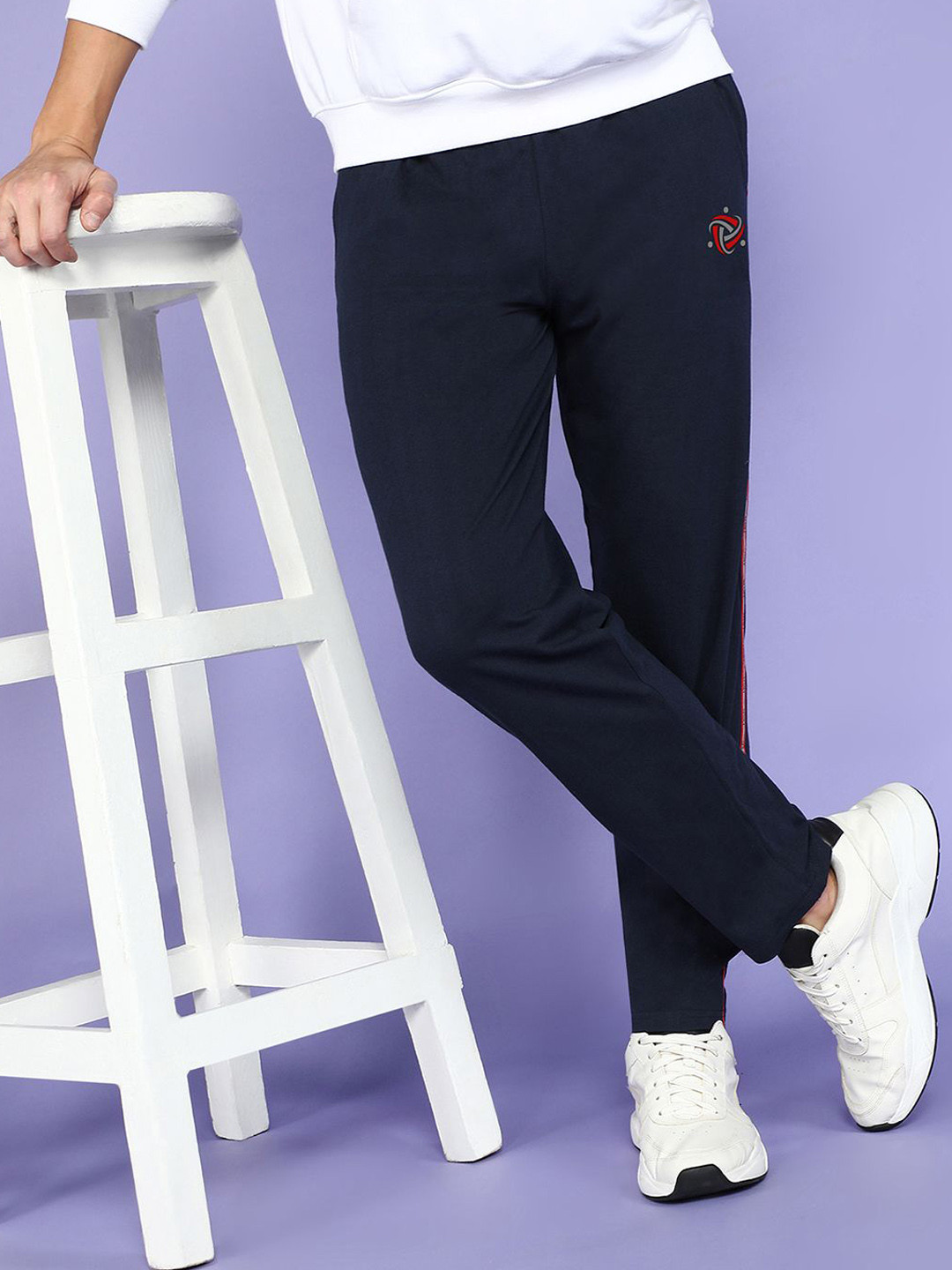 Moda Rapido Men Cotton Mid Rise Track Pants, Blue