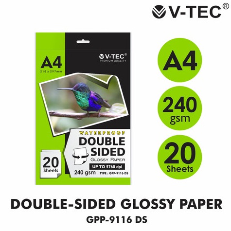 Model Keren.. GLOSY PHOTO PAPER DOUBLE SIDE GLOSY 240 GSM A4/20 LEMBAR V-TEC DI8