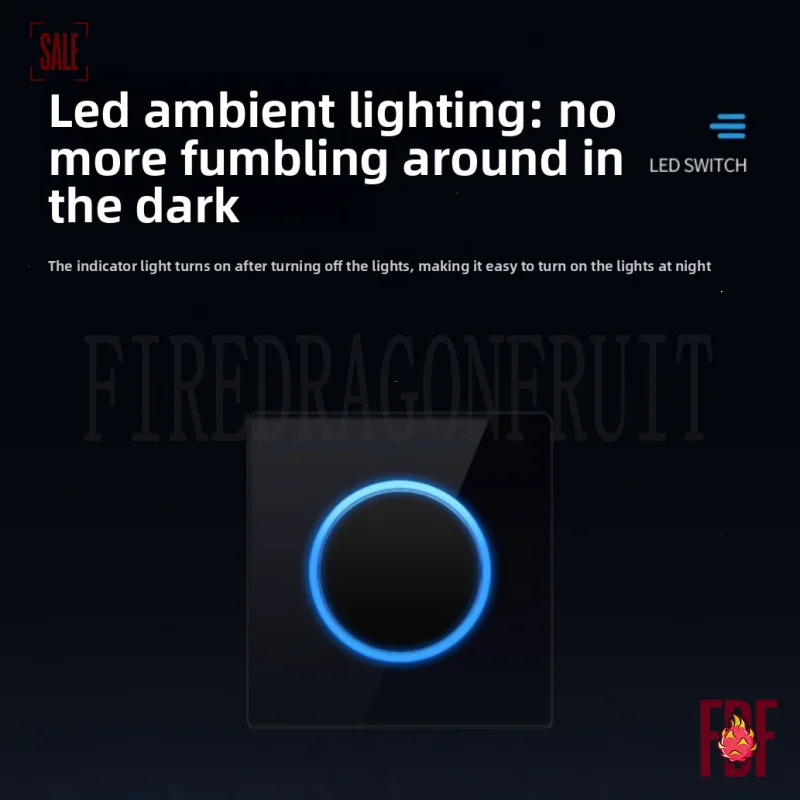 Modern LED Indicator Light 86mm Black Tempered Glass Bedside SwitchWith TouchReset Round DesignSmart HomeLighting
