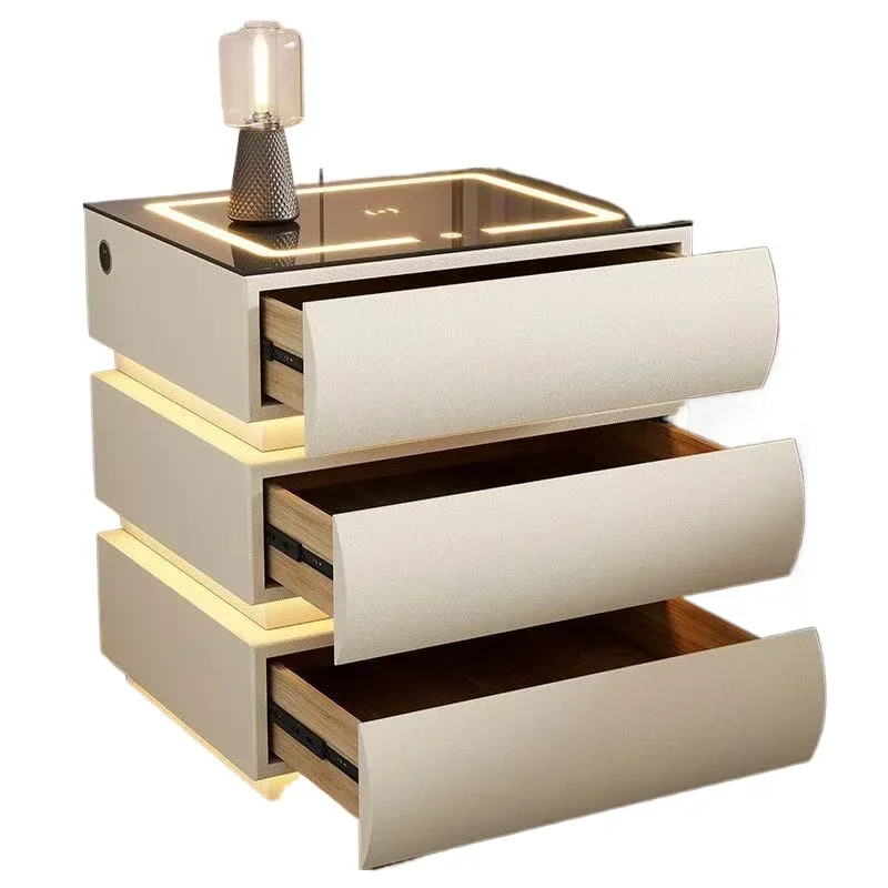 Modern Smart Light Emitting Diode Lamp Bedside Table 3 Drawer Wireless Charger Locker