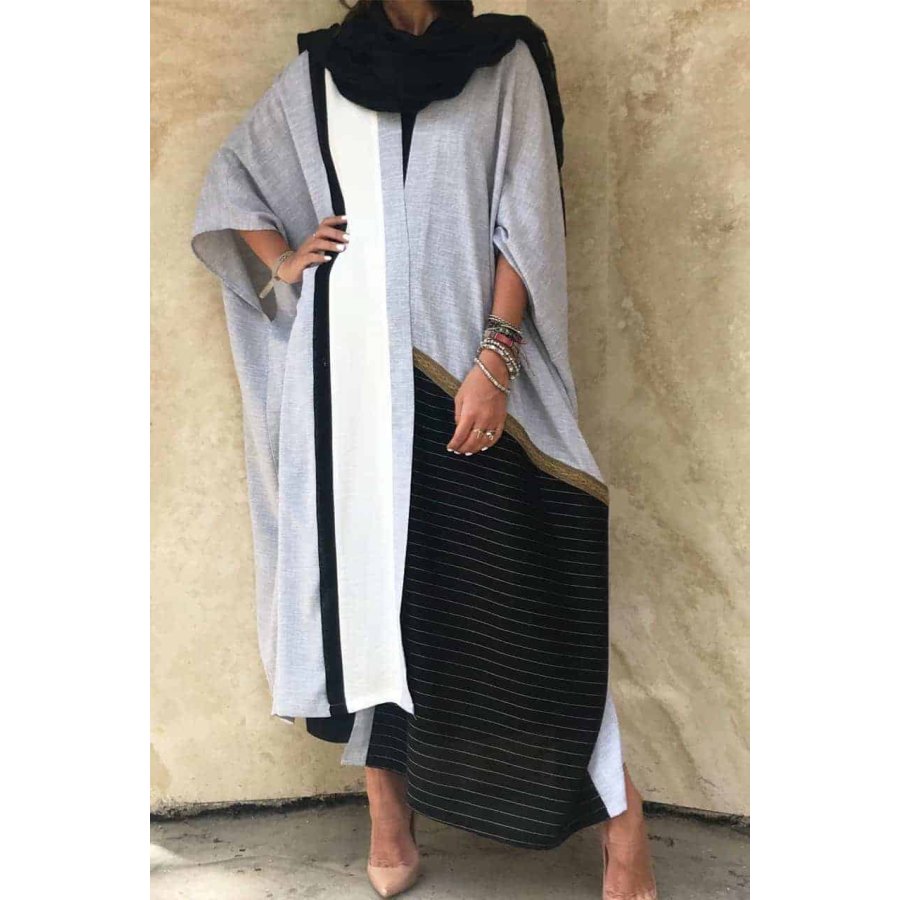 Modisches Robe-Kleid Aus Baumwolle Und Leinen In Colour-Block-Optik