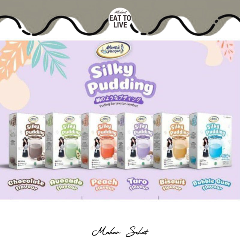 Silky Pudding adalah bubuk puding instan dengan tekstur yang sangat lembut dan ringan. Praktis cara membuatnya, sehat & aman terbuat dari bahan-bahan berkualitas tinggi : susu skim, karagenan, kreamer nabati, coklat powder asli.
