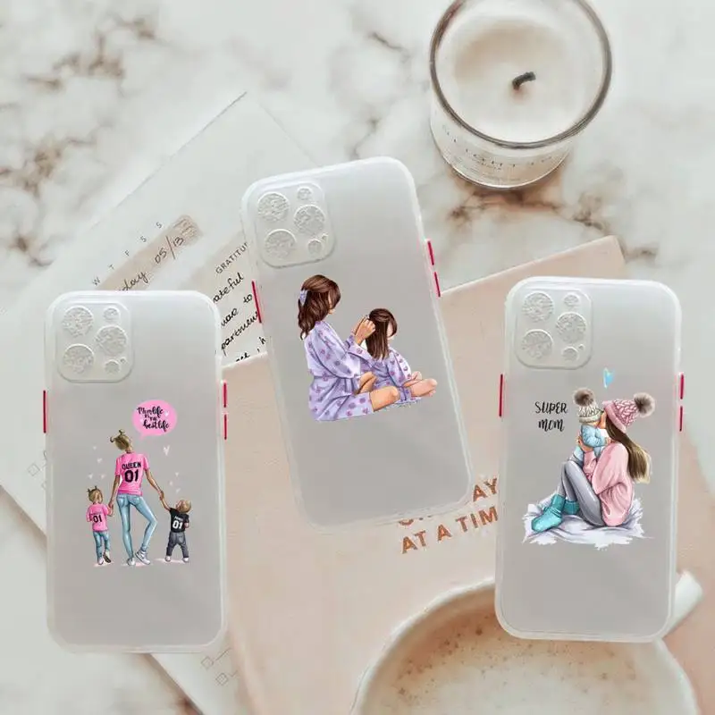 Mom and baby Phone Case For iPhone 12 11 Mini Pro XR XS Max 7 8 Plus X Matte transparent White Cover