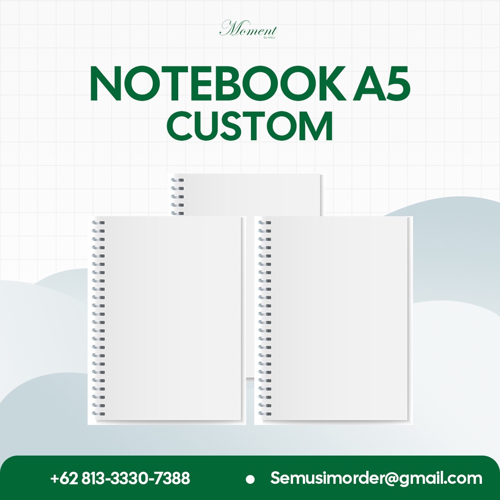 Buku Notes A5 bisa cover sesuai dengan keinginan, cocok untuk buku seminar, souvenir, merchandise, hadiah, ataupun buku harian anda.