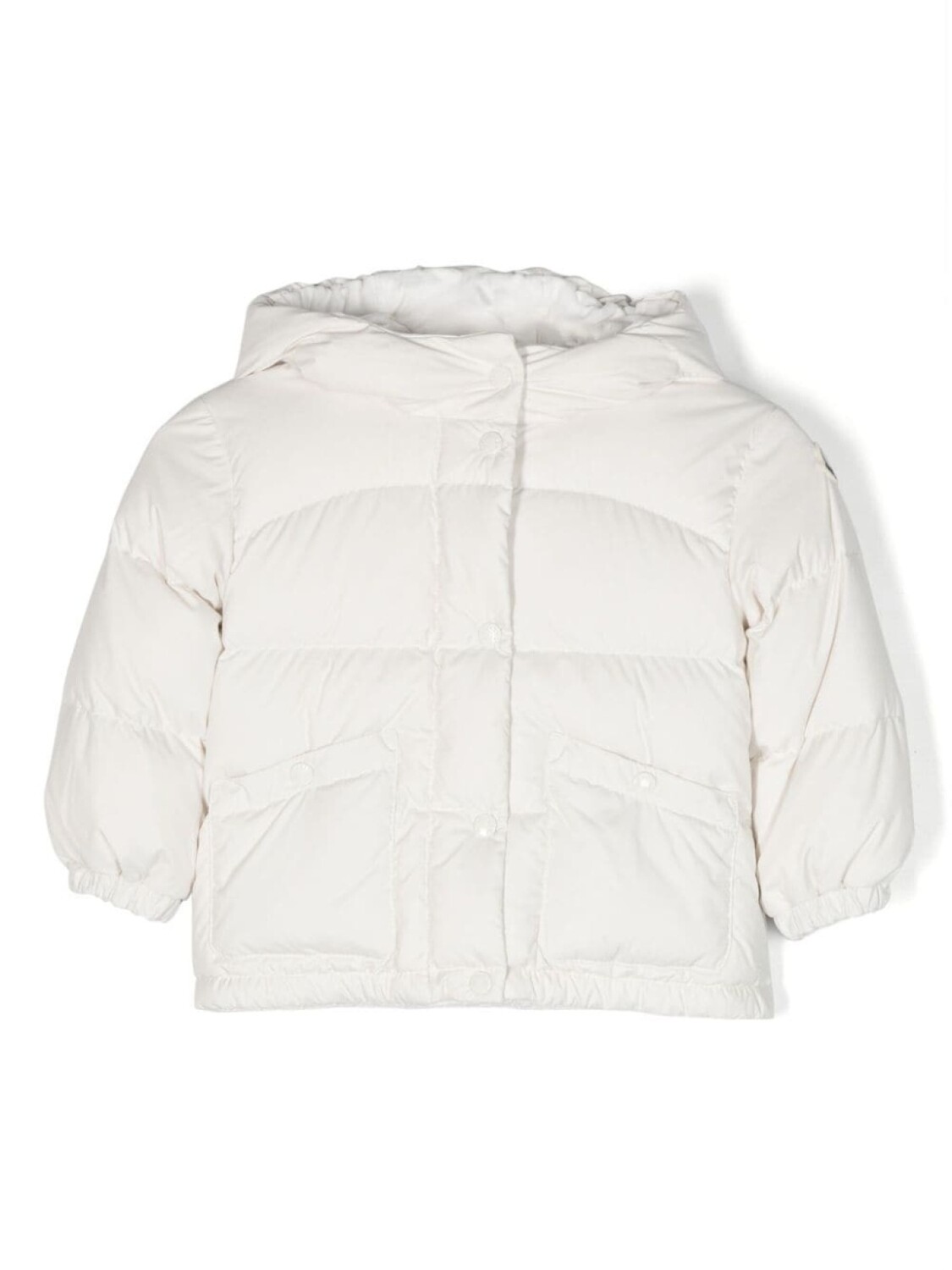Moncler Enfant пуховик Ebre с вышитым логотипом, нейтральный цвет