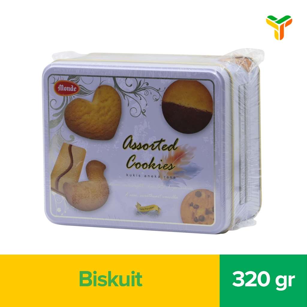 MONDE ASSORTED COOKIES 320 GR biskuit dengan kombinasi berbagai rasa yang dikemas praktis. Terbuat dari bahan berkualitas ideal menemani saat santai Anda bersama teman maupun keluarga. Rasanya renyah dan sangat digemari oleh semua usia.