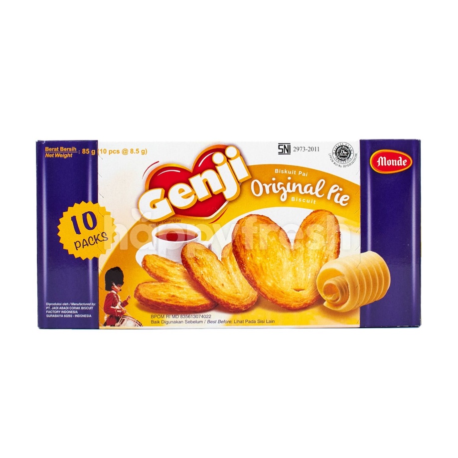 Monde Biskuit Pie Genji Original Pie merupakan produk biskuit Monde yang dibuat dalam bentuk camilan yang unik.