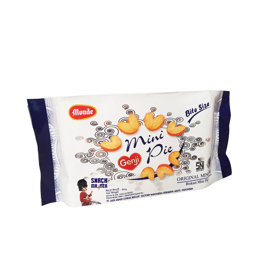 Monde Biskuit Pie Genji Original Pie merupakan produk biskuit Monde yang dibuat dalam bentuk camilan yang unik. Biskuit Monde satu ini adalah biskuit khas Jepang yang terbuat dari bahan-bahan berkualitas tinggi dan memiliki cita rasa yang sempurna. Bernetto 50 gram. Ber BPOM dan Halal MUI.