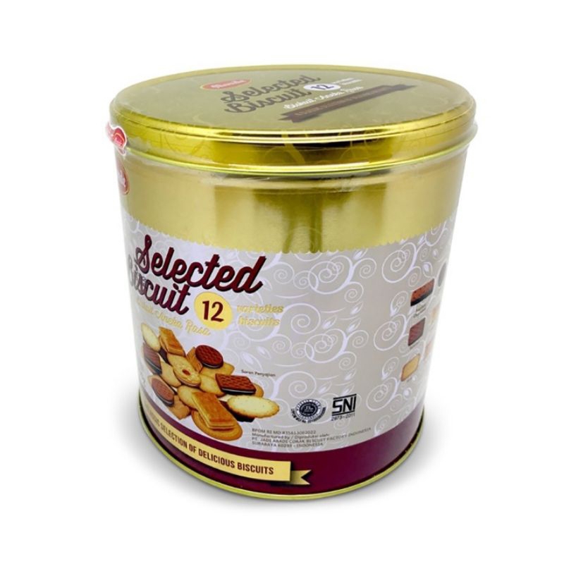 Monde Selection Biscuit Gold Assorted 800 g adalah biskuit aneka rasa dengan 12 varian biskuit didalam kemasan kaleng. Cocok untuk disajikan untuk momen kebersamaan bersama teman dan keluarga. Tersedia dalam kemasan kaleng 800 g.