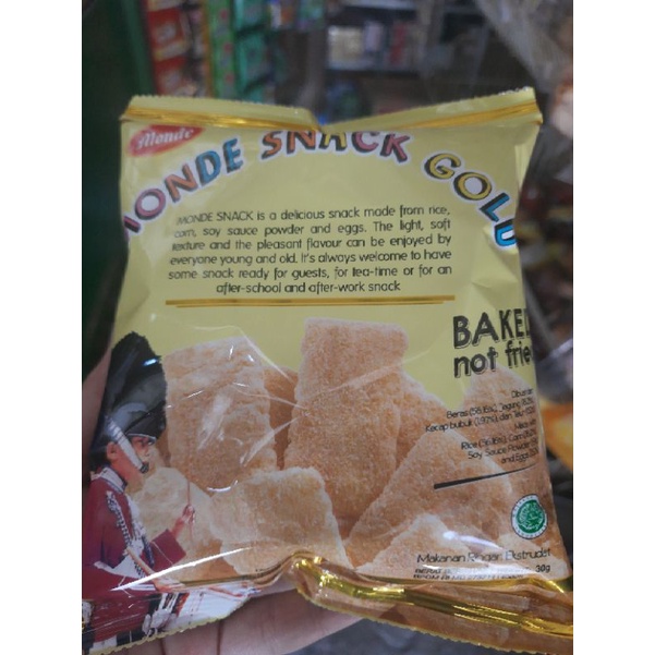 MONDE Serena Snack Gold 30 gr adalah produk makanan ringan Monde yang dirancang berbeda dari makanan ringan lainnya. Terbuat dari beras, jagung, kedelai, dan telur yang diolah menjadi satu dan menghasilkan suatu makanan ringan bertekstur lembut dan menghasilkan aroma yang sedap untuk dinikmati. Rasanya begitu gurih dan sedikit asin, mampu memanjakan setiap lidah yang merasakannya. Dikemas secara sederhana dalam kemasan plastik mudah sobek dan dapat dinikmati kapan saja dan di mana saja.