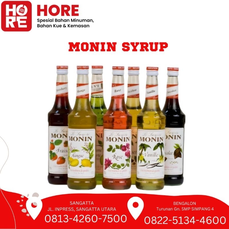 Monin sirup dari prancis, adalah ahli dibidangnya sejak tahun 1912. Perusahaan ini dikenal ditingkat internasional sebagai produsen sirup premium untuk bidang kuliner dan tata boga, dikalangan bar-bar, kafe kopi, restorant, hotel, bahkan para profesional diseluruh dunia.