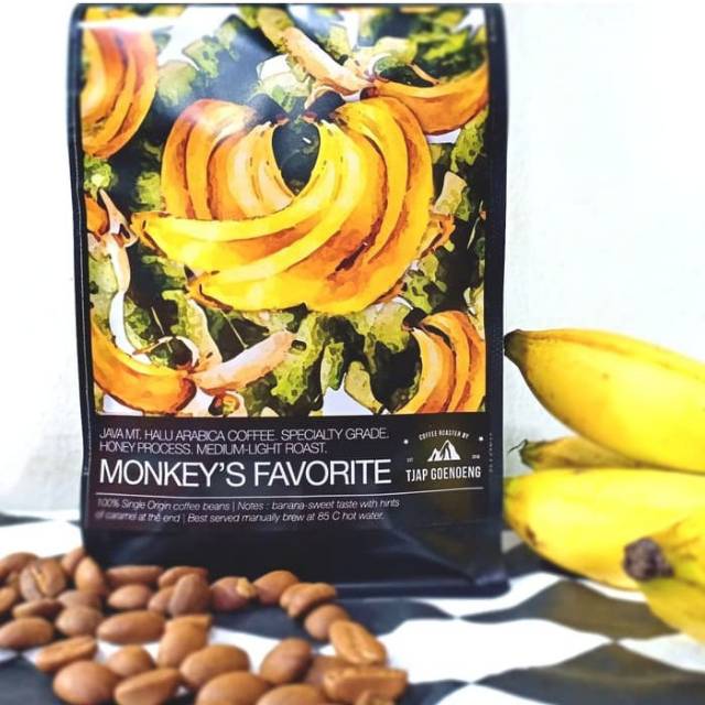 Monkey's Favorite adalah produk andalan kami dengan varietas arabica berasal dari gunung Halu di Jawa Barat. Kopi ini ditanam oleh petani sayur di gunung Halu dekat dengan tempat peristirahatan satwa monyet hutan. Aroma buah pisang karamel yang kuat diduga berasal dari banyaknya pohon pisang yang menjadi teman tumbuhnya tanaman kopi gunung Halu.
