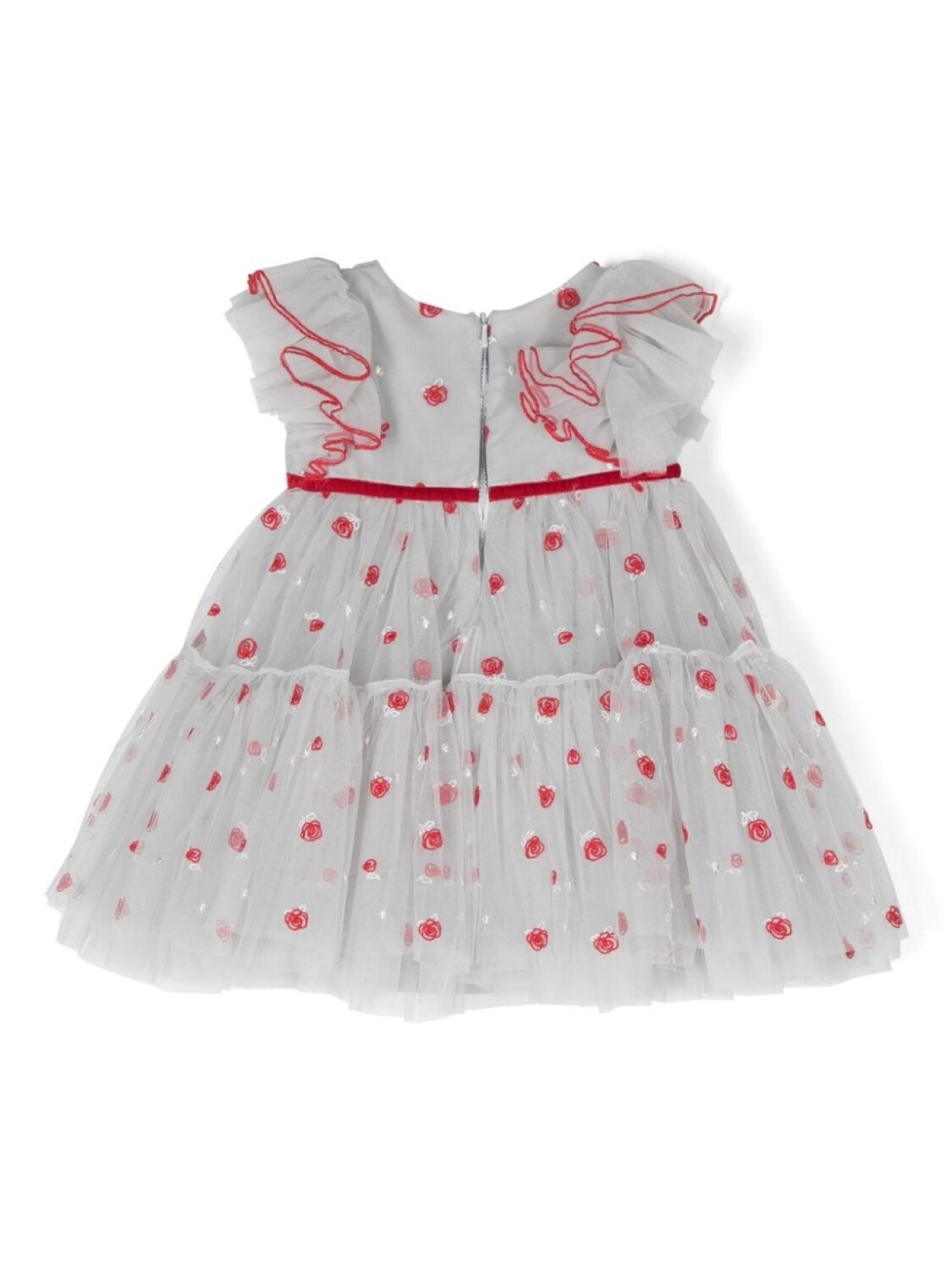 Monnalisa расклешенное платье с цветочной вышивкой, серый