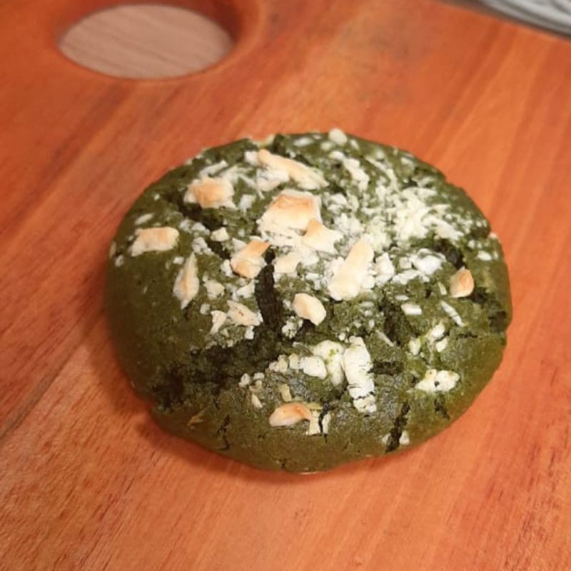Soft-Baked Cookies Ukuran Besar (60gr). Bittersweet Matcha Dough + White Chocolate