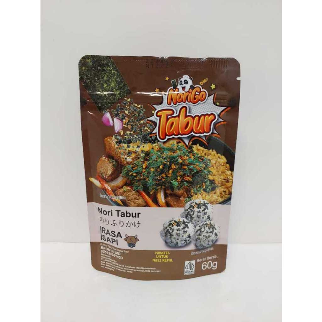 Norigo Tabur Original adalah potongan rumput laut rasa Sapi dengan campuran biji wijen, minyak wijen, dan bawang merah yang digunakan sebagai taburan/toping atau tambahan rasa pada makanan.