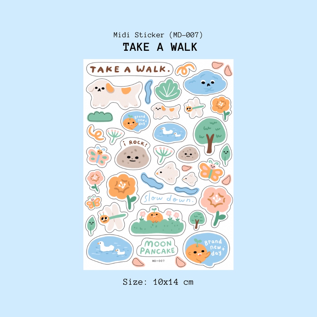 Sticker sehari-hari dengan tema take a walk atau jalan-jalan. Bikin inget rasa-rasa jalan di sekitar rumah gimana hehehe. Stikernya cocok buat journaling dan hias-hias btw