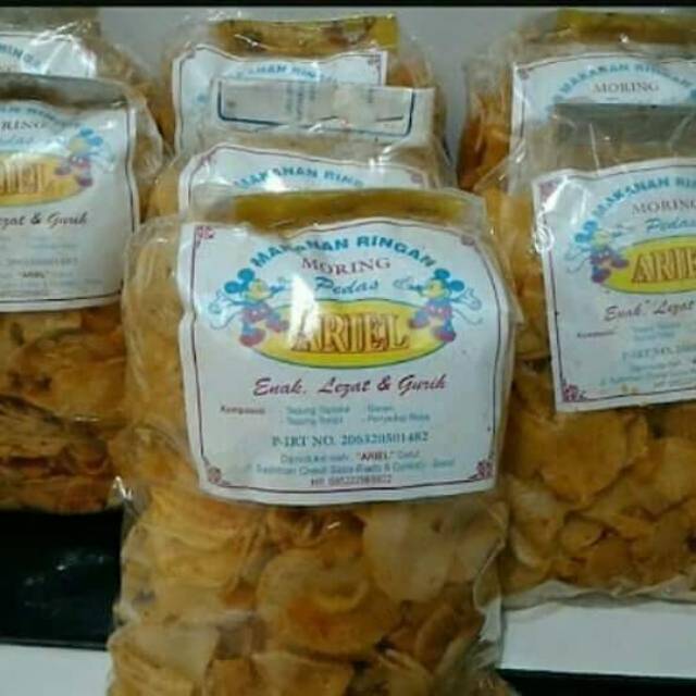 #moringariel adalah cemilan khas garut yg renyah, tersedia rasa pedas dan original netto 250gr. minimal order 1kg (4 pcs), packing full kardus gratis. Untuk produk cuanki dan moring minimal order 4pcs boleh campur, transaksi kurang dari 4 akan dikemas tanpa kardus.