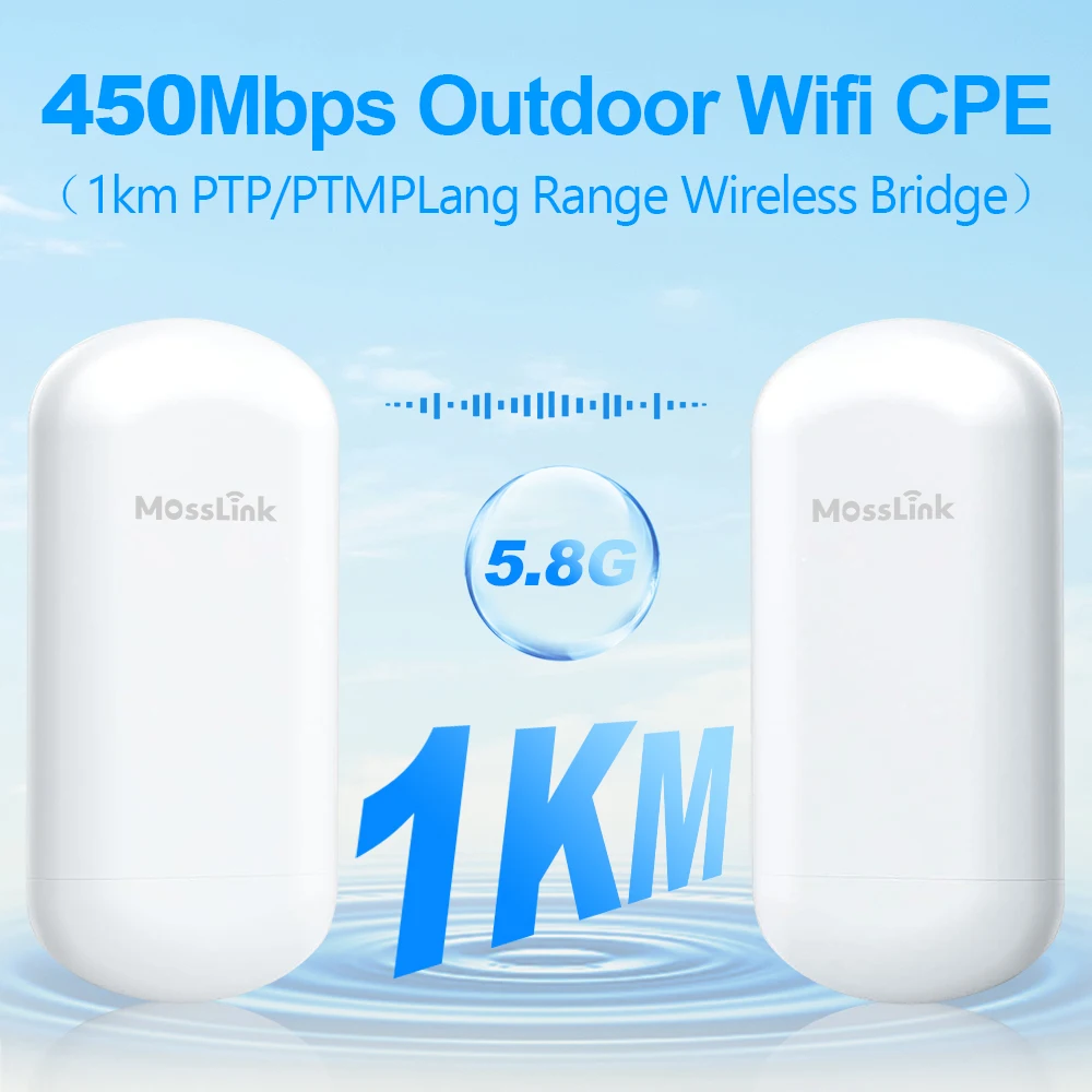 Mosslink 5.8G 450Mbps Outdoor CPE Bridge Wireless Wifi Router AP Repeater Long Range Extender PTP PTMP 1-2 KM Wireless Bridge