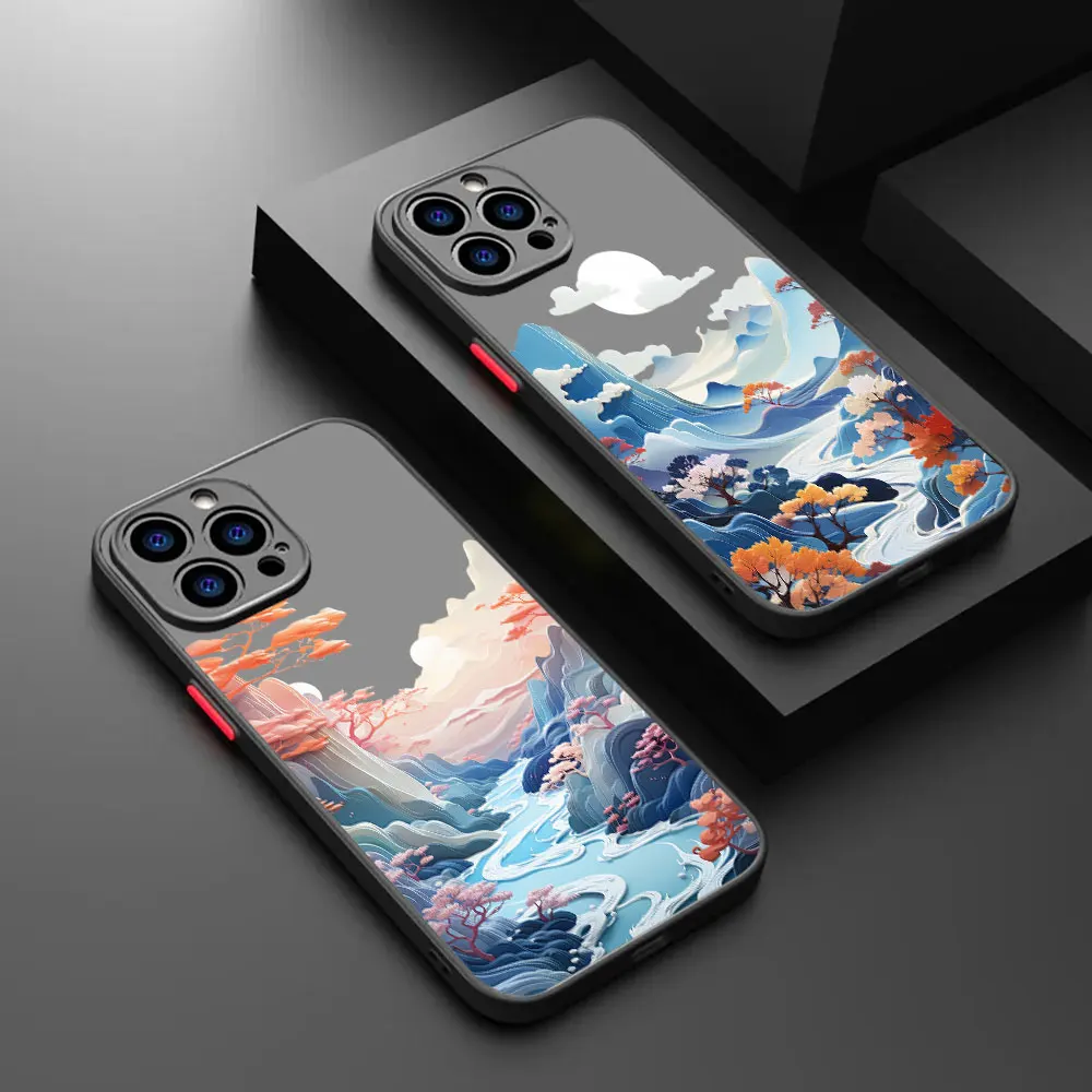 Mountain Scenery Flower Cases For Apple iPhone 15 14 13 12 11 XS Pro Max Mini 8 7 Plus X XR Phone Case Frosted Translucent Cover