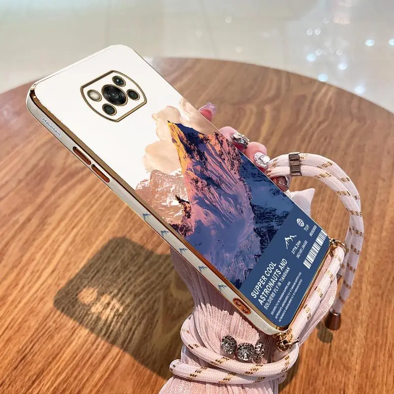 Mountaintop View Lanyard Plating Phone Case For Xiaomi Poco M5 M4 Pro F4 GT X4 GT F3 X3 F4 X4 M3 X3 NFC X2 X3 Pro C40 Cover
