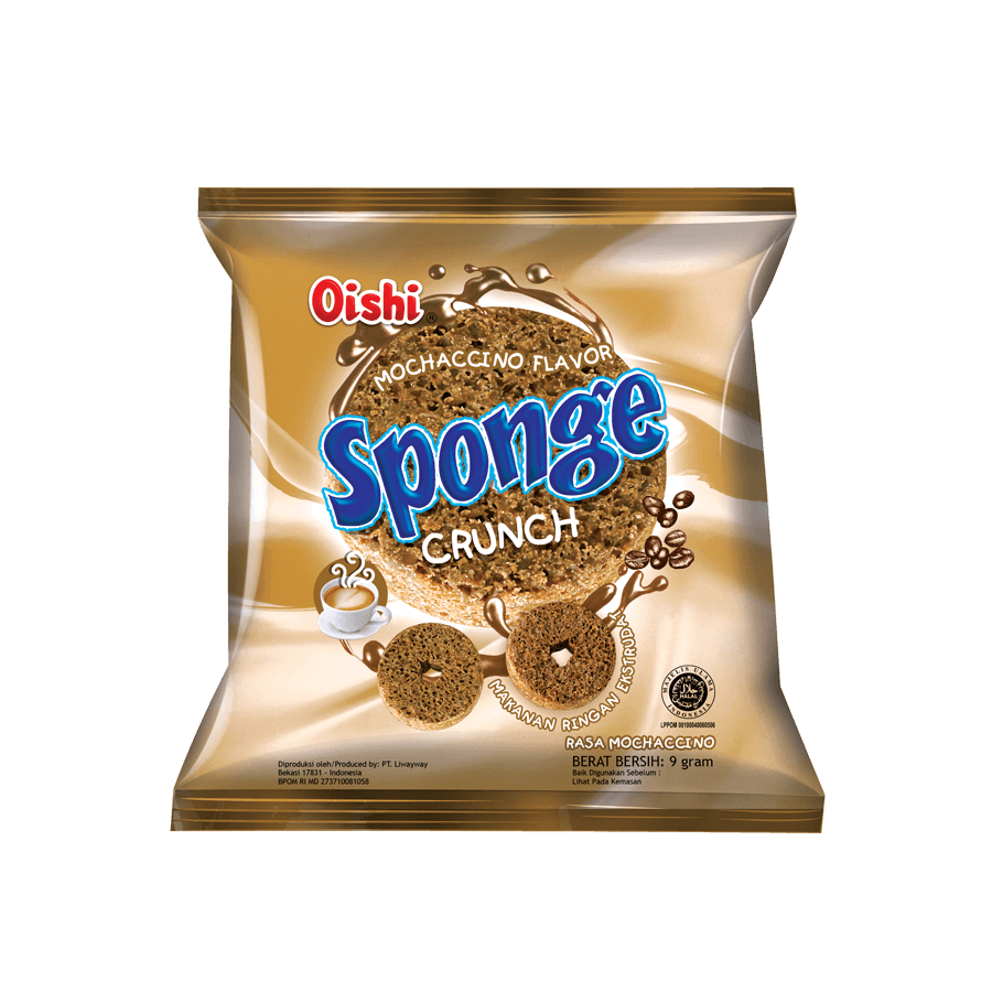 Oishi Sponge Crunch Mochachino adalah snack dengan bentuk sponge lingkar yang unik. Tekstur sponge yang renyah dan rasa yang manis semakin menambah unik snack dari Oishi ini. Oishi Sponge Crunch hadir dalam kemasan yang praktis dan higienis untuk menjaga kerenyahan sponge crunch di dalamnya.