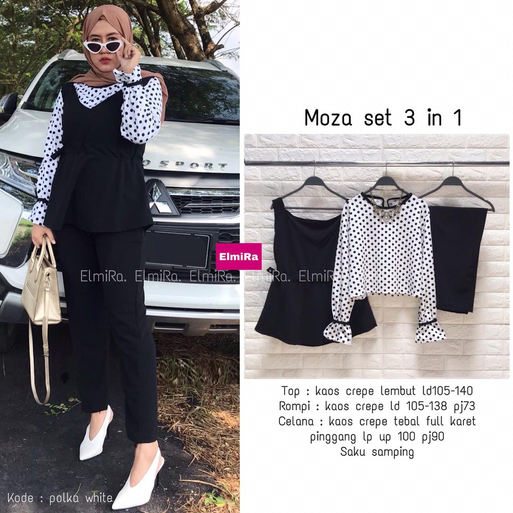 Moza set 3 in 1 => top bahan kaos crepe lembut LD 105-140, rompi bahan kaos crepe LD 105-138 pj 73, celana bahan kaos crepe tebal full karet pinggang LP up 100 pj 90 saku samping [email protected]