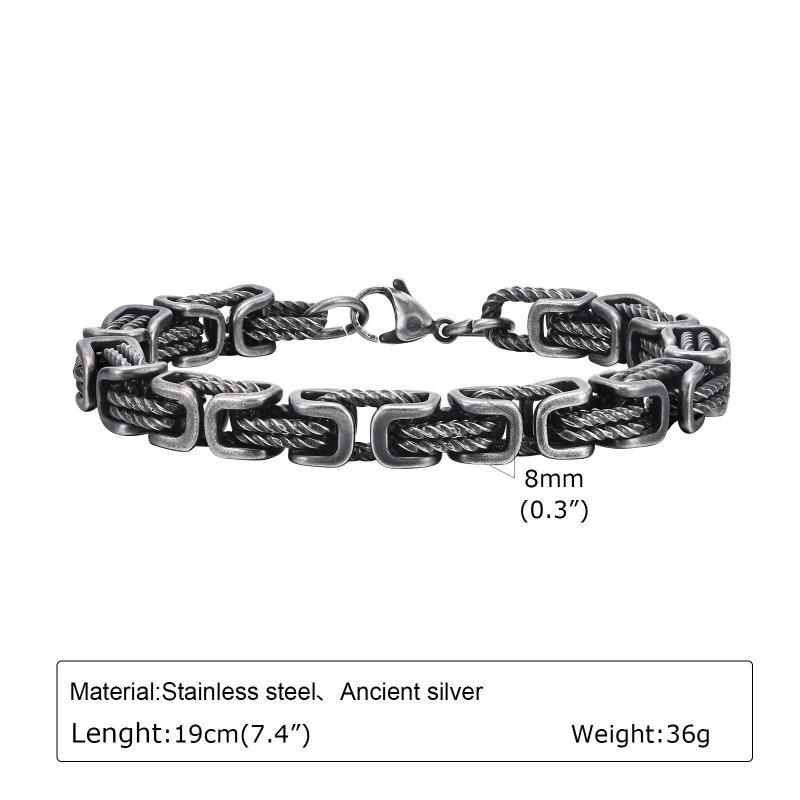 Mprainbow массивные византийские браслеты для мужчин и мальчиков, серый браслет из нержавеющей стали с плетеными звеньями 8 мм, винтажные ювелирные изделия в подарок для него 19CM