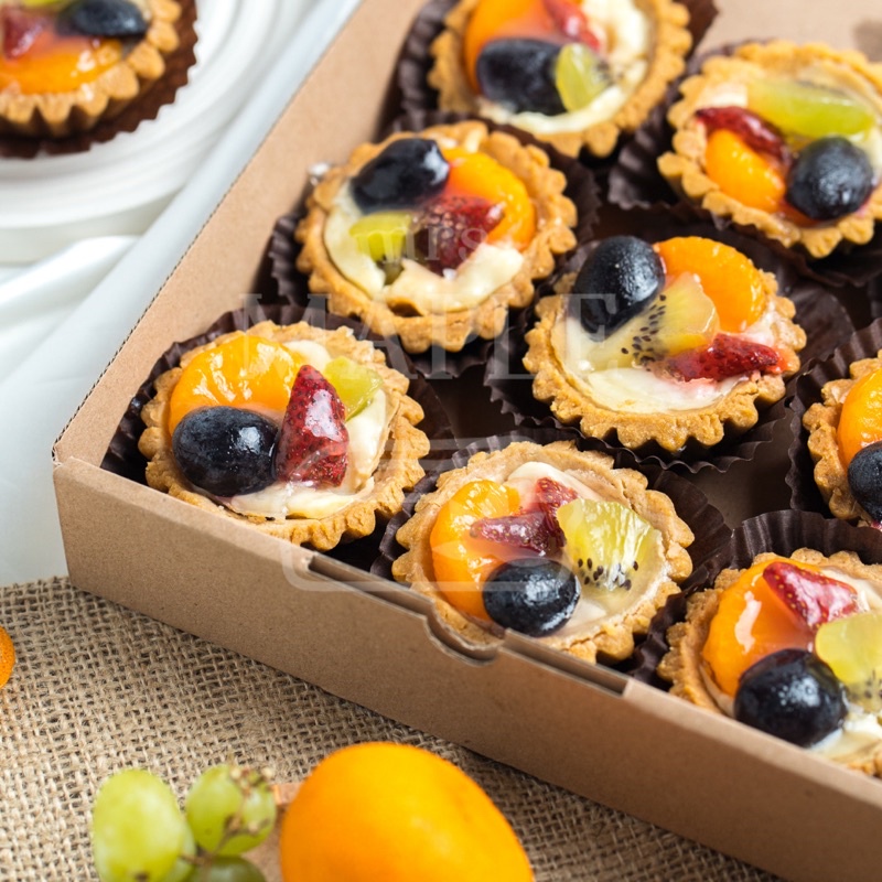 tart buah dengan kulit yang crunchy dilengkapi dengan cream dan juga buah-buah segar.
