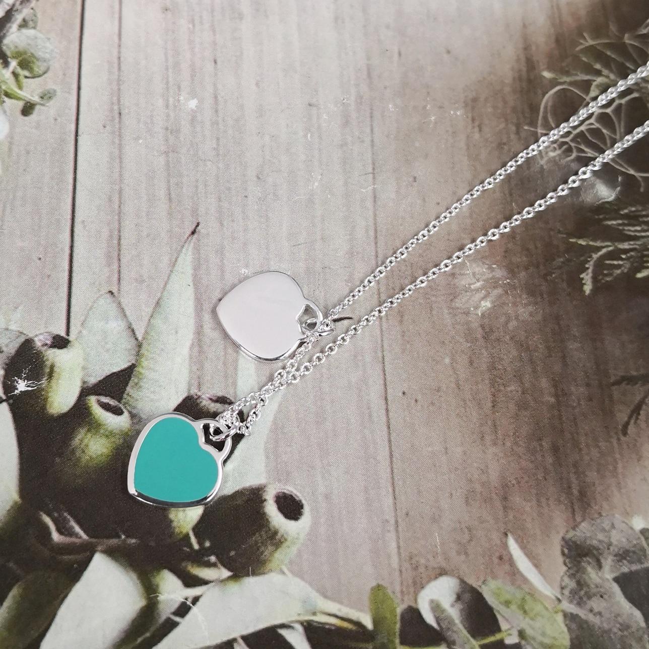 Ms S925 чистое серебро синяя классическая розовая эмаль двойное ожерелье в форме сердца кулон дамы подарки на день святого валентина