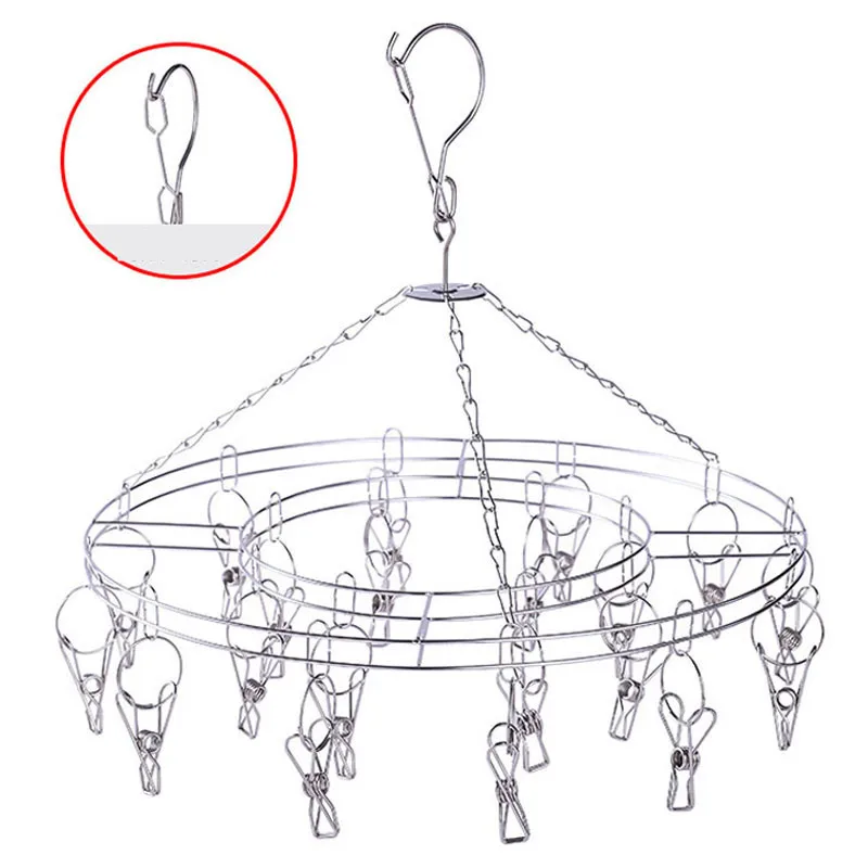 Multi Clip Windproof Clothes Hanger Foldable Drying Rack For Socks Underwear 360 Degrees Rotating Stainless Steel Hanging Rack