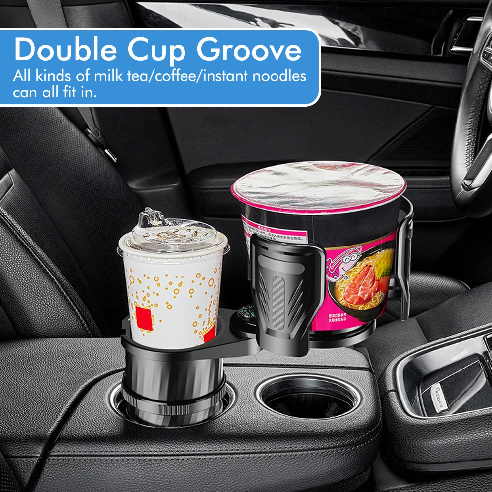 Multi-Functional Car Dual-Purpose Cup Holder & Drink Rack with Instant Noodle Holder, Compass, and Extendable Base