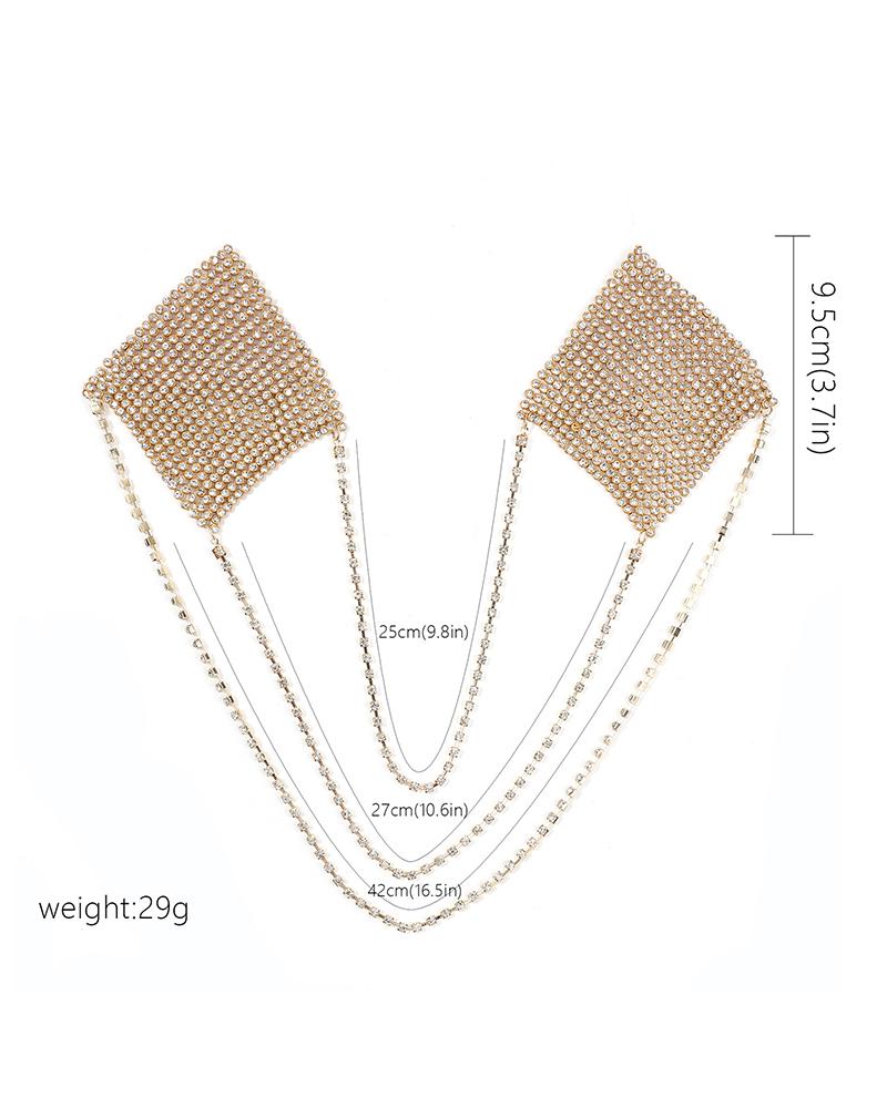 Multi-Layer Rhinestone Nipper Stickers Bra Body Chain, Gold