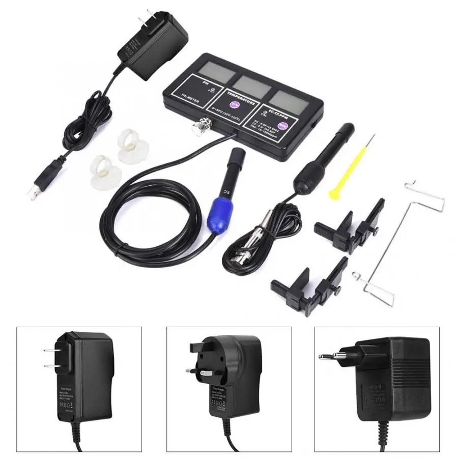 Multi-Parameter 5-In-1 EC PH CF Temperature TDS Meter Tester Water Quality Monitor for Aquarium PH Measuring Tool.