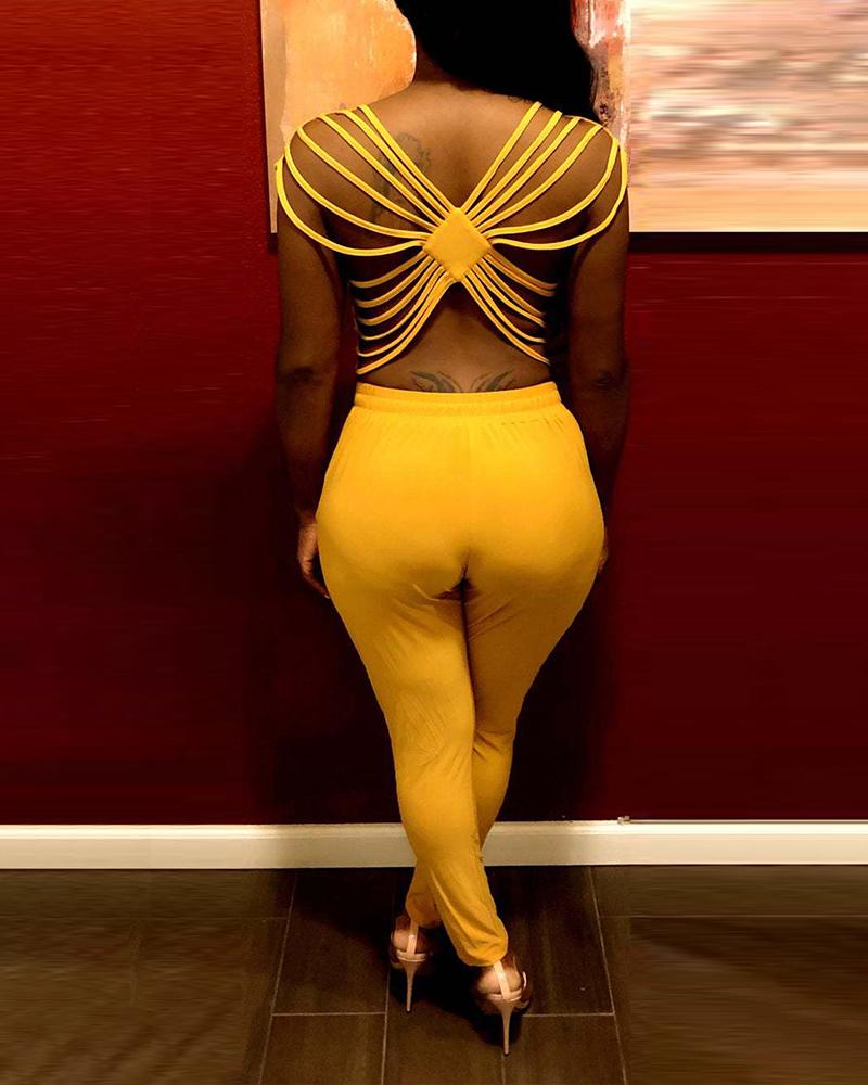 Multi-Strap Open Back Drawstring Jumpsuit, Yellow