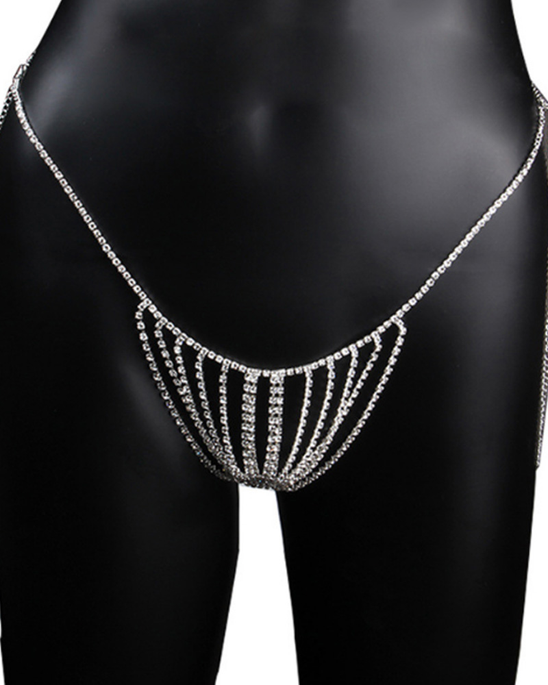Multi Strap Rhinestone Decor Body Chain, Silver