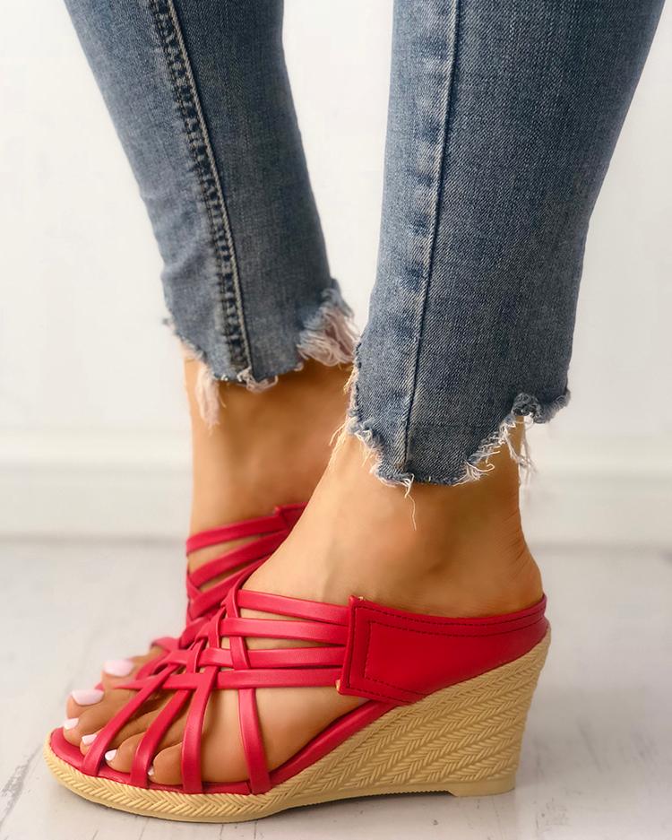 Multi Strappy Peep-toe Platform Wedge Sandals