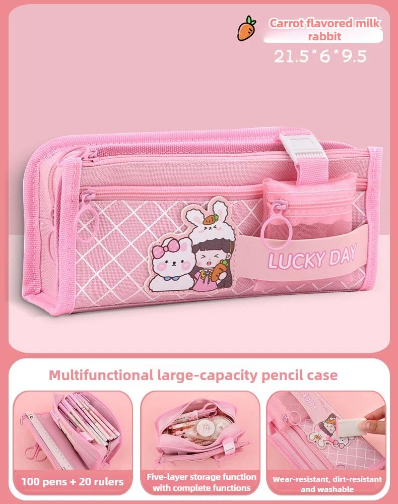 Multi-layer Storage Student Pencil Case Large Capacity Cartoon Stationery Storage Bag Multi-functional Student Pencil Case розовый